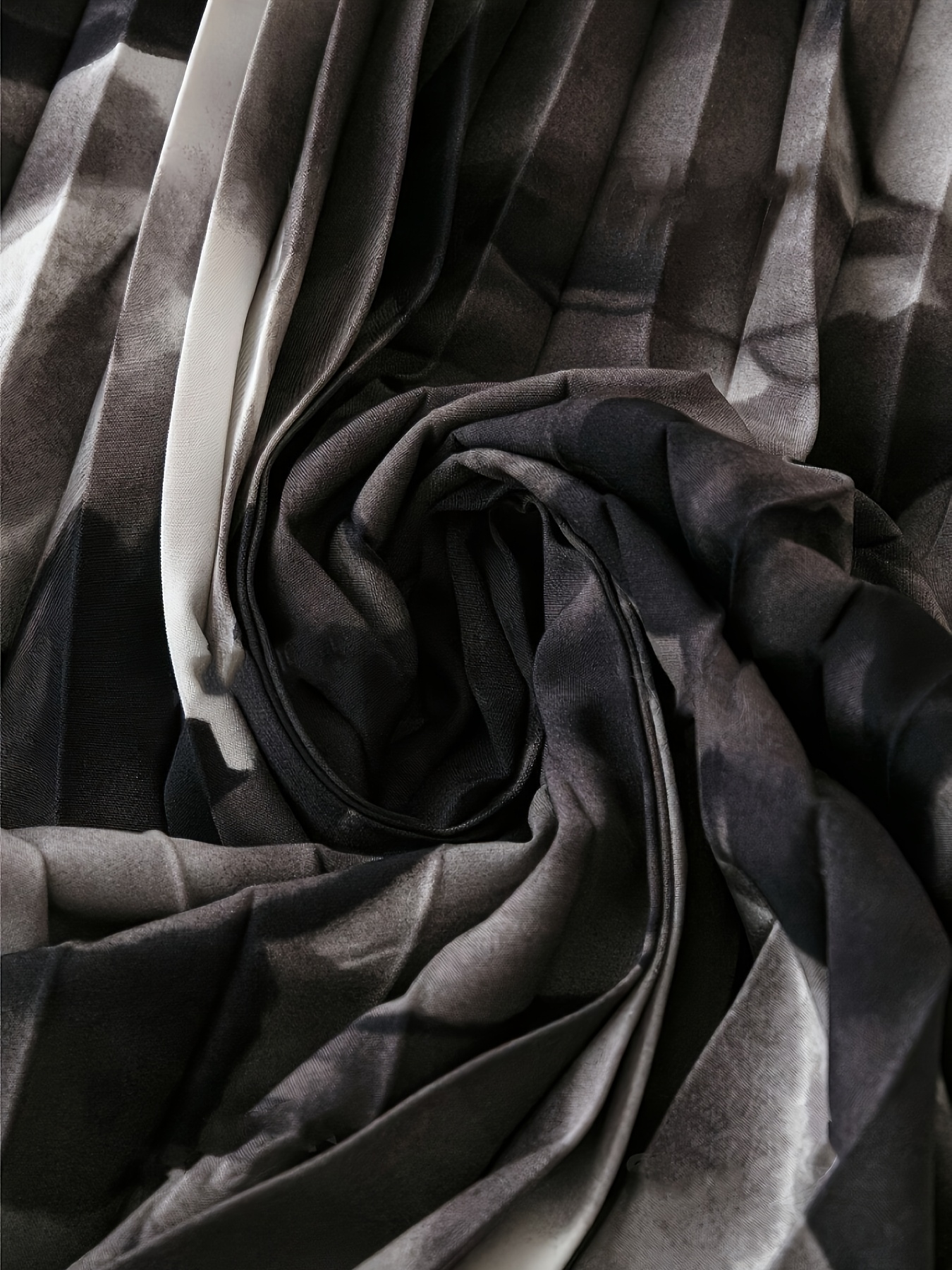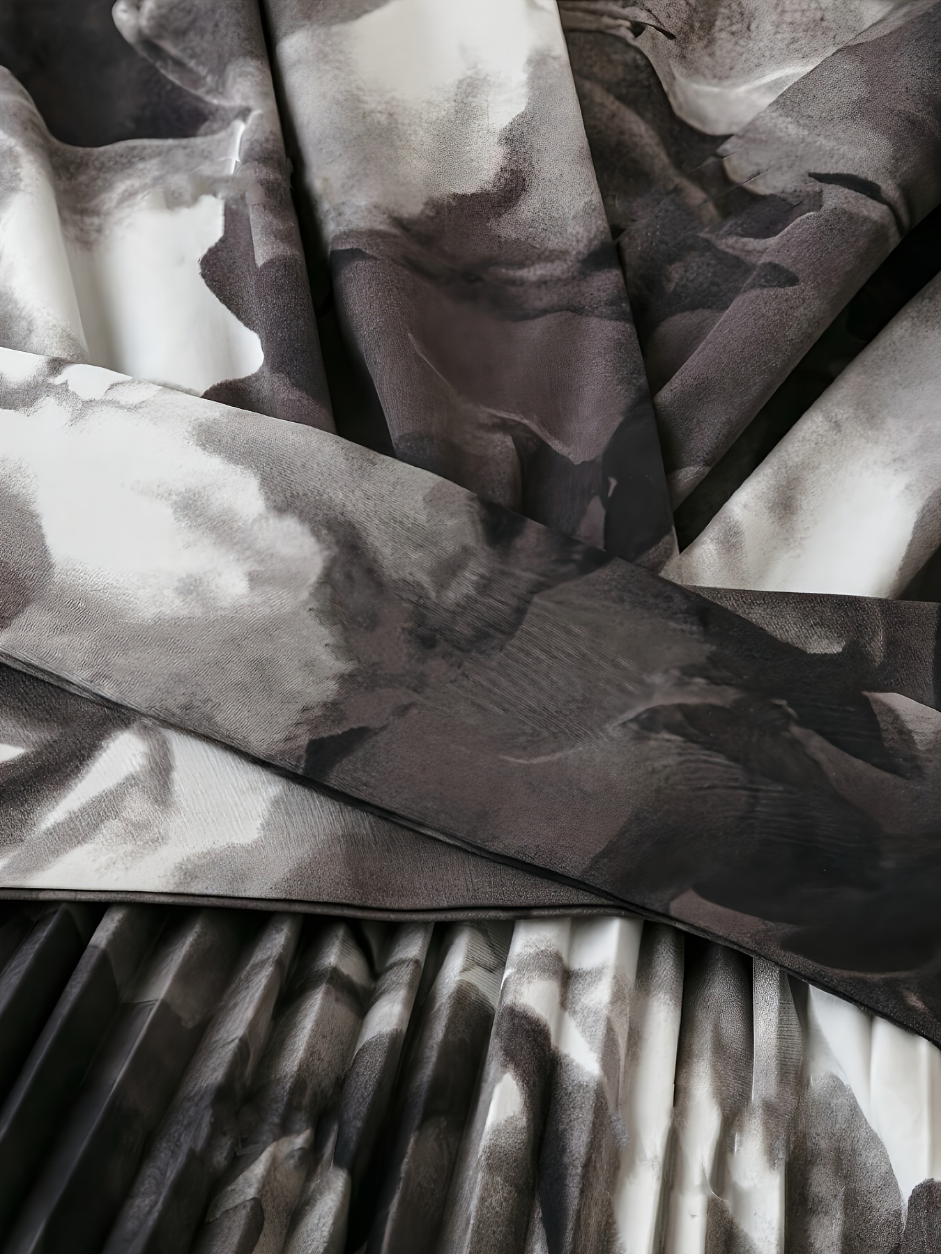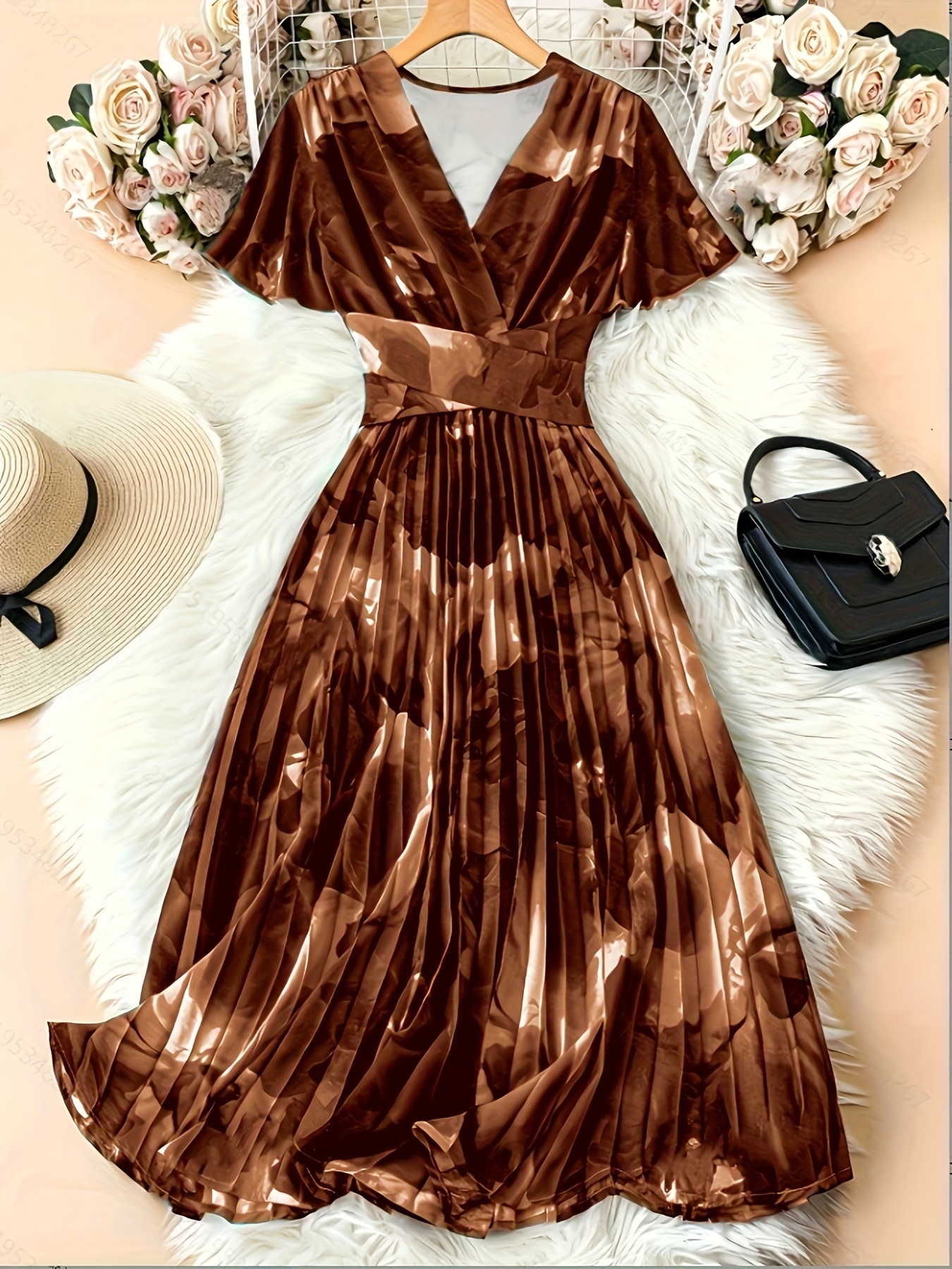 Elegant V-Neck Short Sleeve Floral Print Pleated Dress with Belt - Polyester, Black/White/Gray, Spring/Autumn, Casual & Semi-Formal Occasions, Cute Dresses
