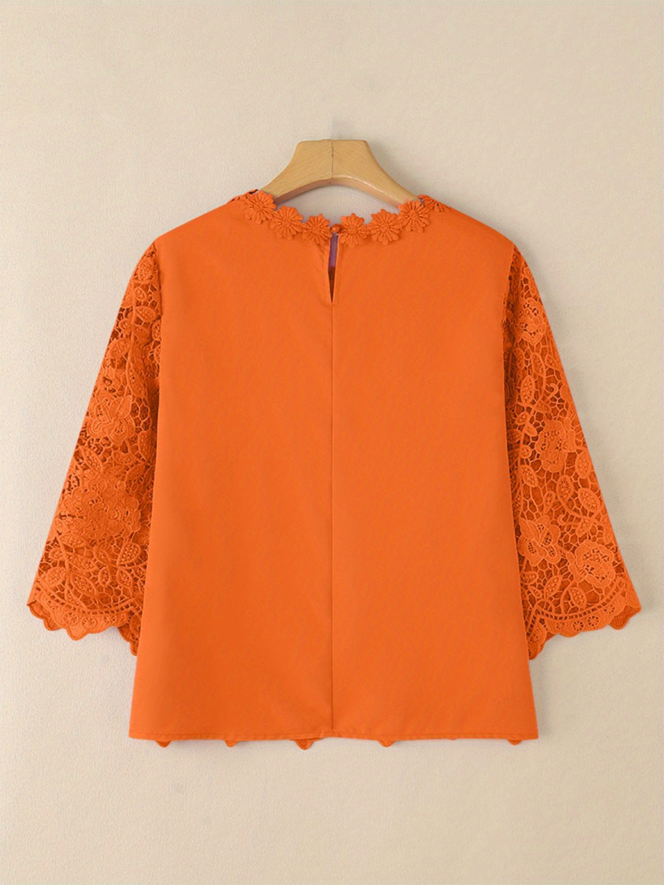 [Elegant Oversized Blouse] Plus Size, ZANZEA Women's Plus Size Elegant Oversized Blouse - Lightweight Short Sleeve-Like 3/4 Sleeve Crew Neck Shirt, Wrinkle-Resistant White & Colors, Structured Collar, Machine Washable - Office, Commuter & Casual Wear (No Stretch)