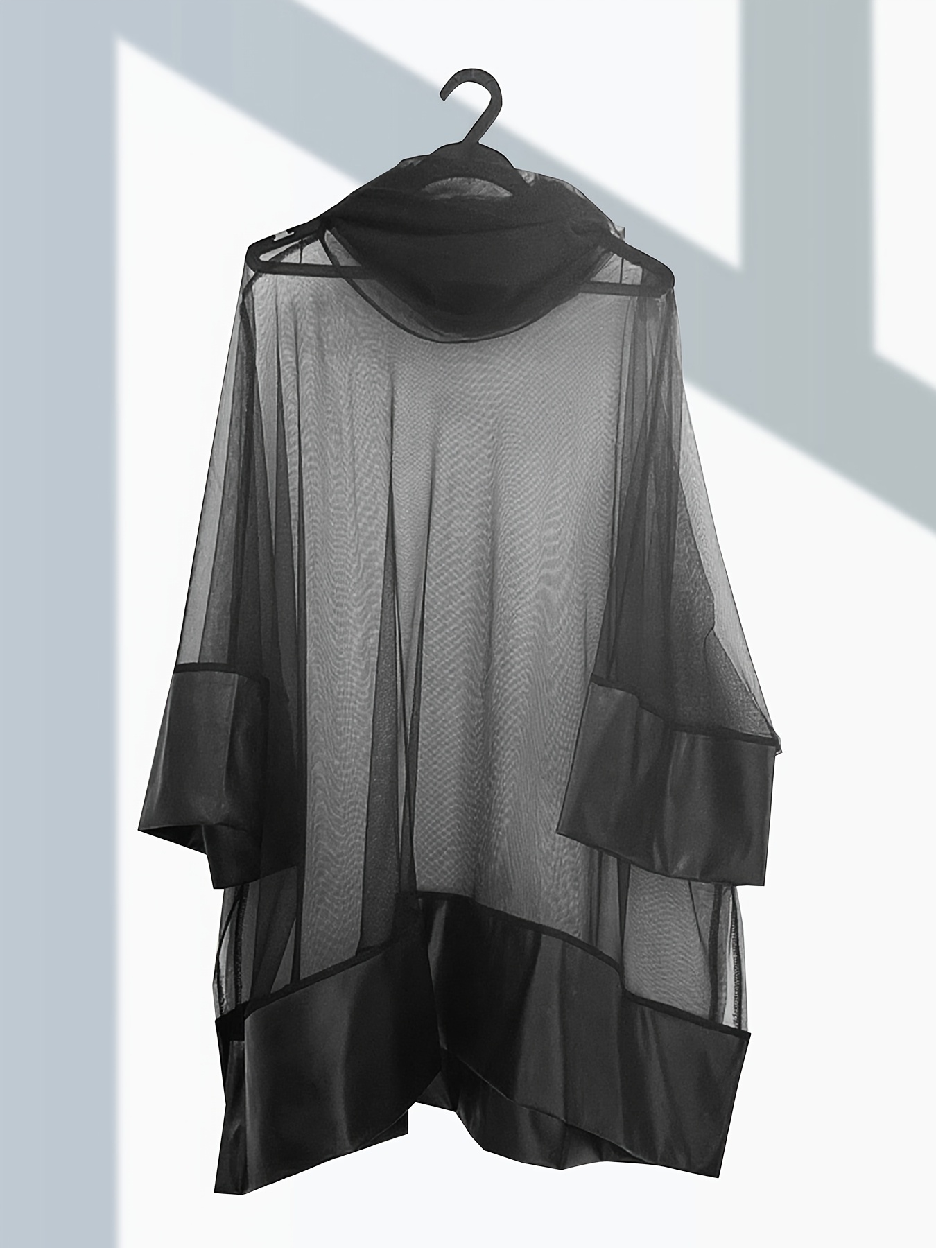 Plus Size, Women's Plus Size Elegant Blouse - Semi-Sheer Asymmetrical Shirt with Stack Neckline, Lightweight Chic Tops for Casual & Formal Events - Machine Washable Women's Clothing, Formal Attire, 3/4 Sleeve Design, Delicate Fabric
