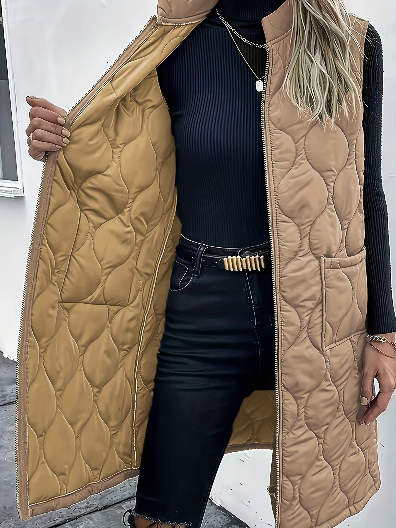 Chic Plus Size Sleeveless Vest - Casual Zip-Up, Warm Puffer Jacket for Women, Solid Color with Stand Collar