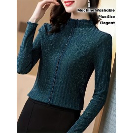 Plus Size, Plus Size Women's Elegant Long Sleeve Blouse with Oversized Collar & Ruffled Mandarin Collar - Semi-Sheer Wrinkle-Resistant-Like Smock Jacket-like Top, Hand Washable All-Season Professional Shirt (No Elasticity) for Office