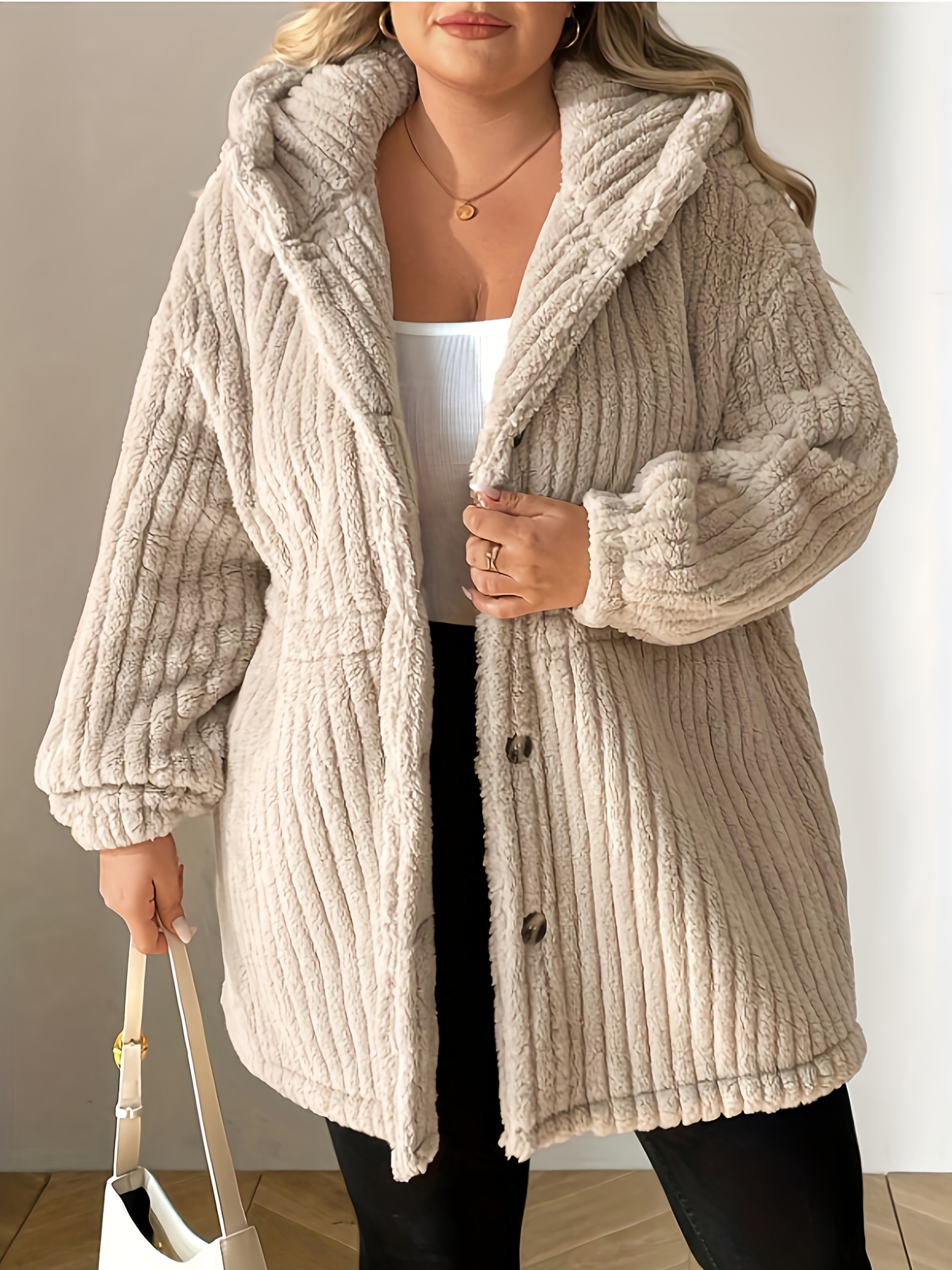 Plus Size - Plus Size, Women'S Plus Size Elegant Teddy Bear Jacket - Cozy Winter Coat with Front Button Closure, Soft Plush & Hooded Collar, Machine Washable (pink) - Casual Outerwear For Cold Weather