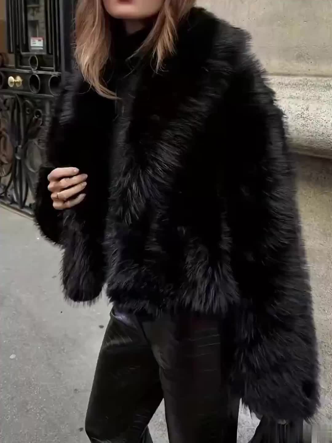 Plus Size - Women'S Plus Size Elegant Long Sleeve Faux Fur Coat - Cozy Warm Solid Color Shawl with Front Button Closure, Fluffy Lined, Slim Fit for Fall/Winter Fashion, Winter Fashion Coat | Elegant Long Sleeve Coat | Plush Lined Interior