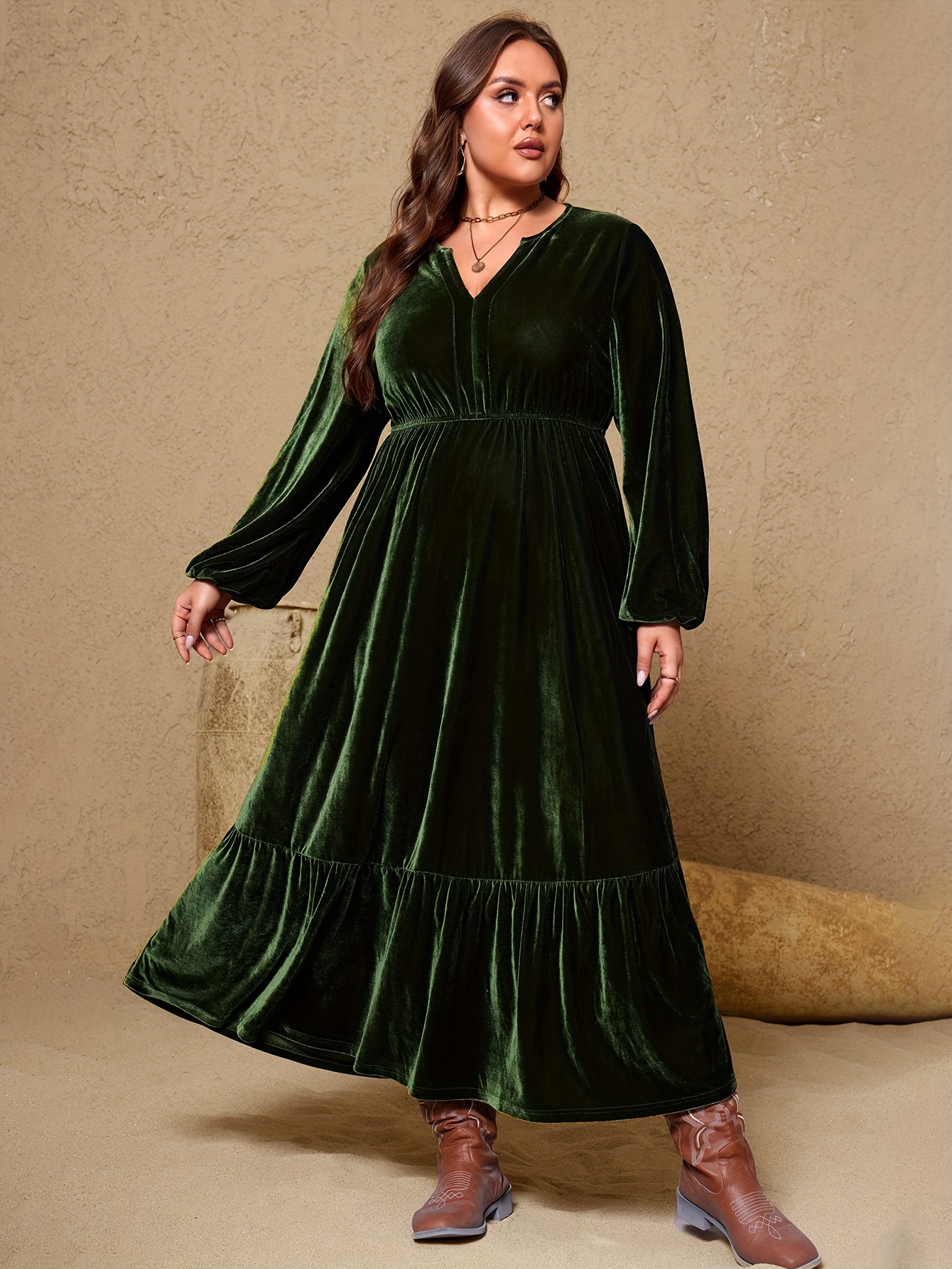 Plus Size, Plus Size A-Line Maxi Dress - Sleeve Winter Dress with -Length Hem, Machine Washable Solid Color Elegant Party Wedding Guest Dress (Casual to Formal) - Coat-Compatible Outfit