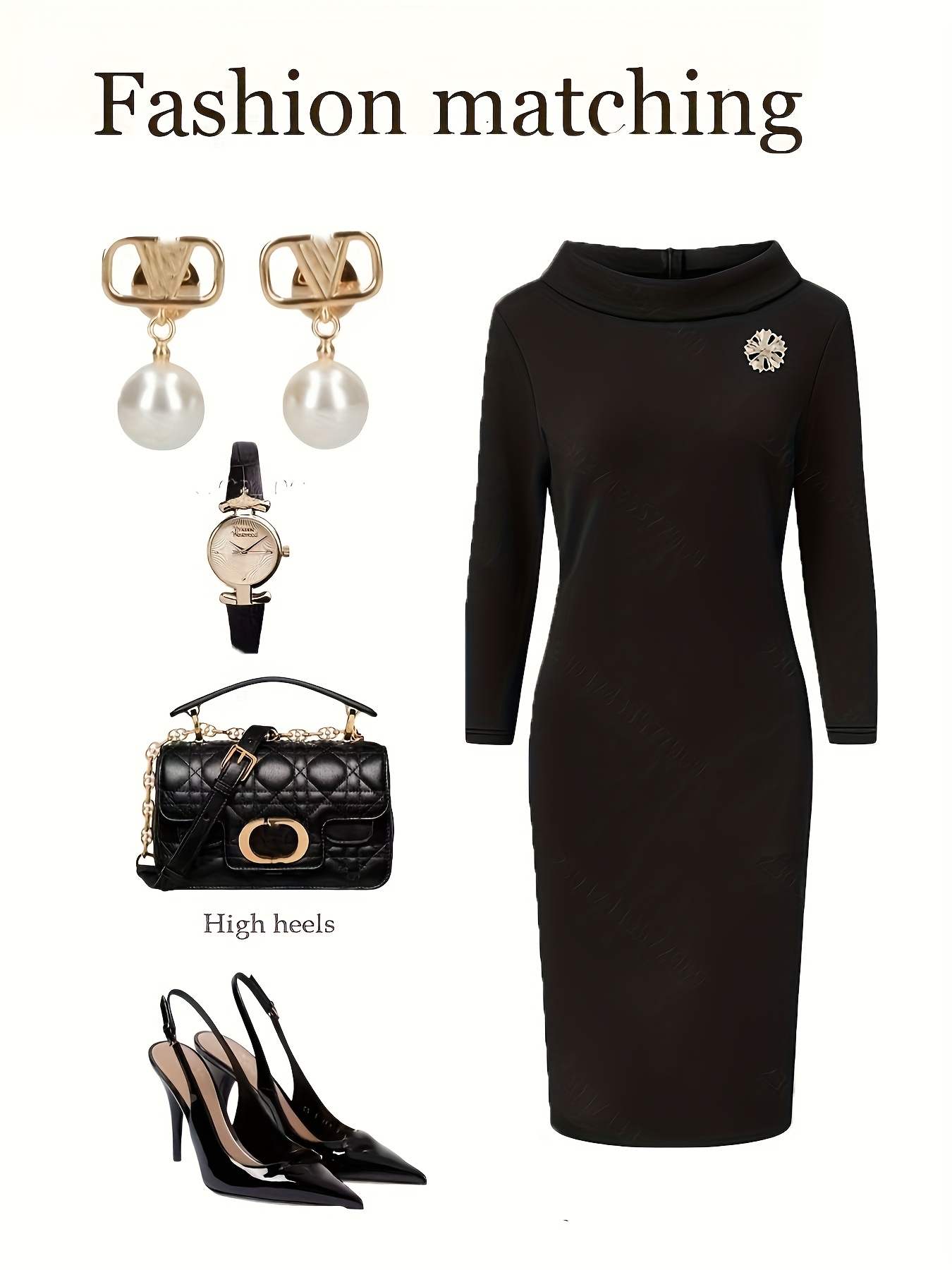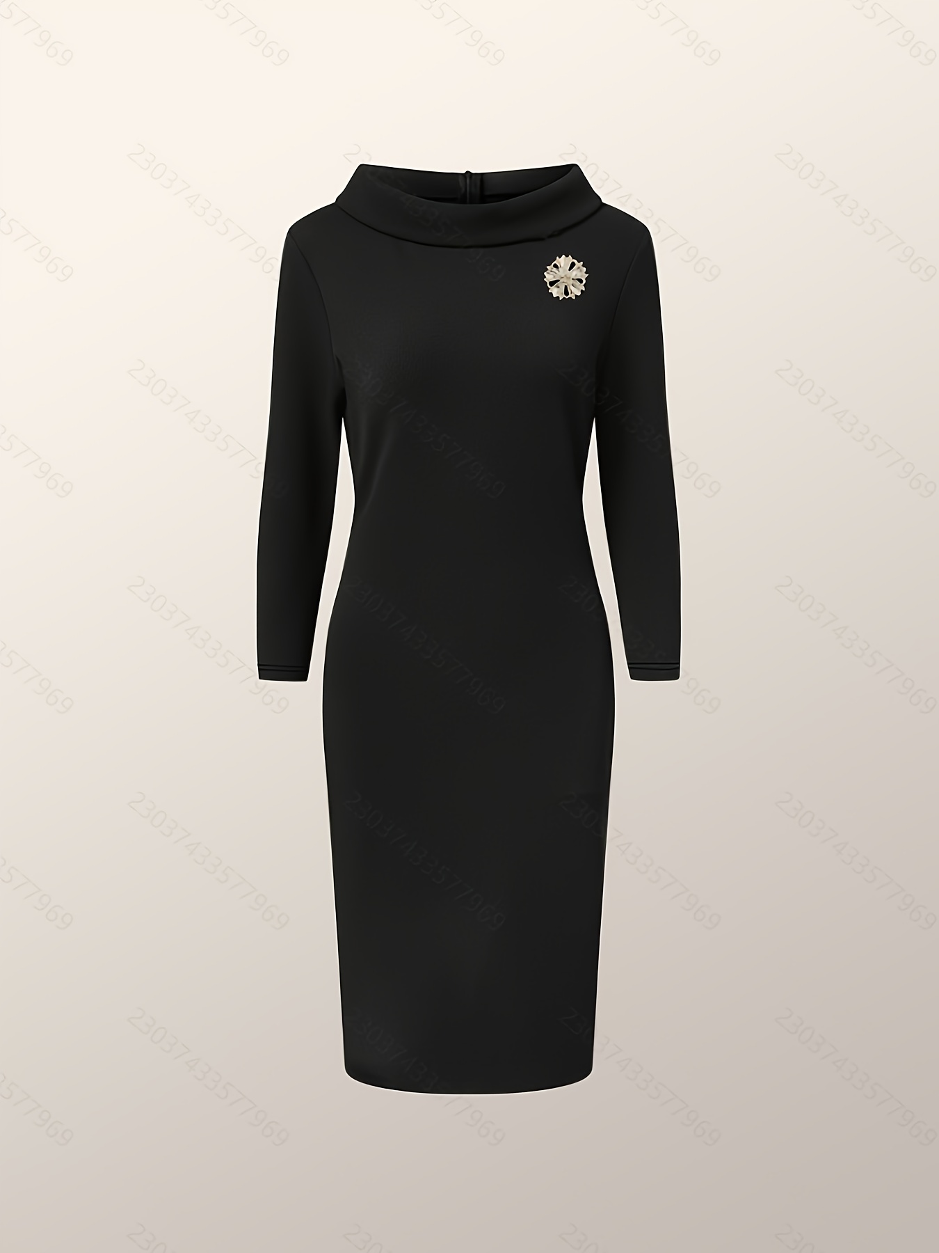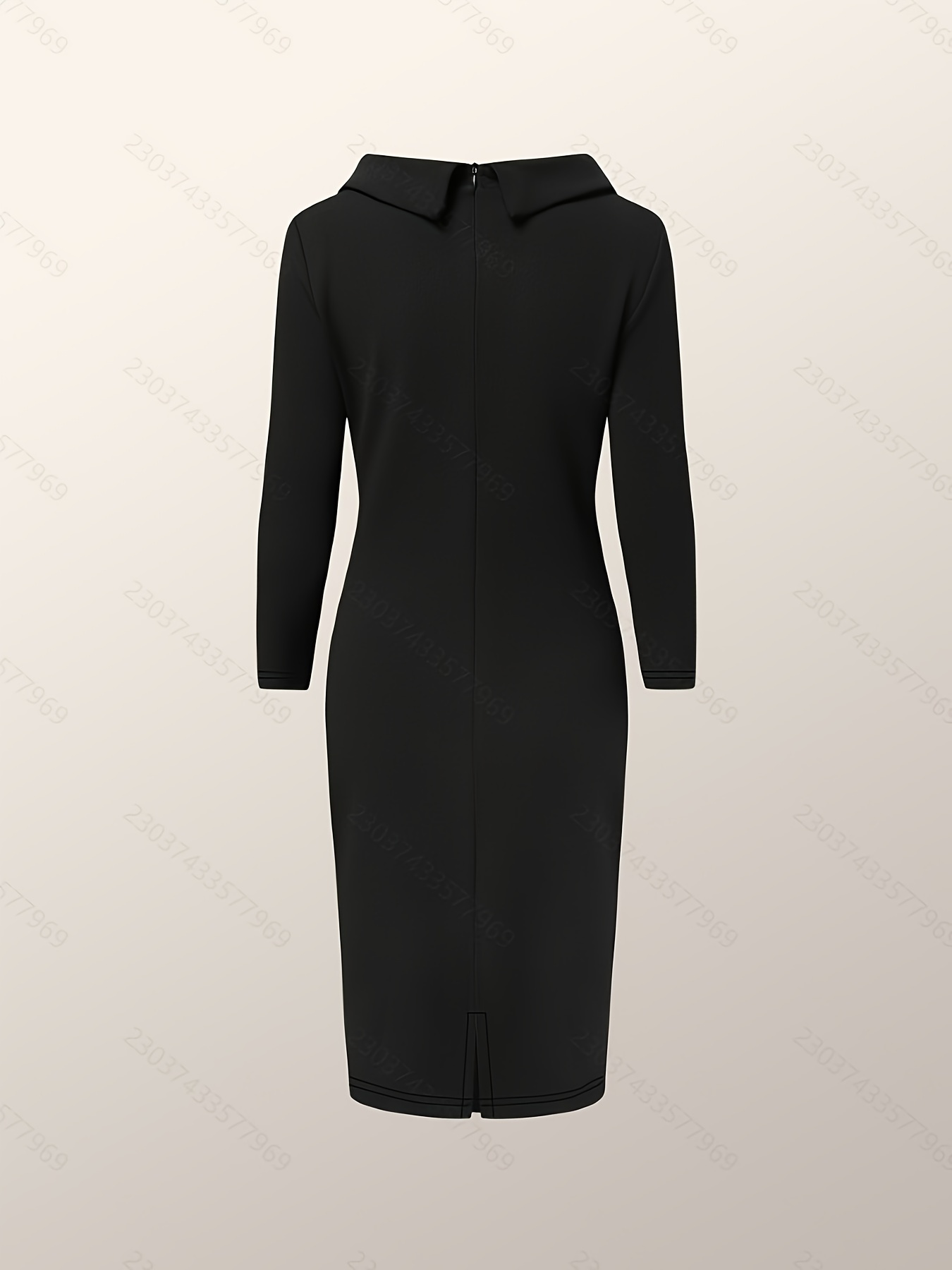 Plus Size - Plus Size, Women'S Elegant Plus Size Formal & Everyday Dress - Long Sleeve Round Neck Solid Color Red Dress with Lapel Collar, Machine Washable Winter Fall Outfits, Dresses For Women Plus Size