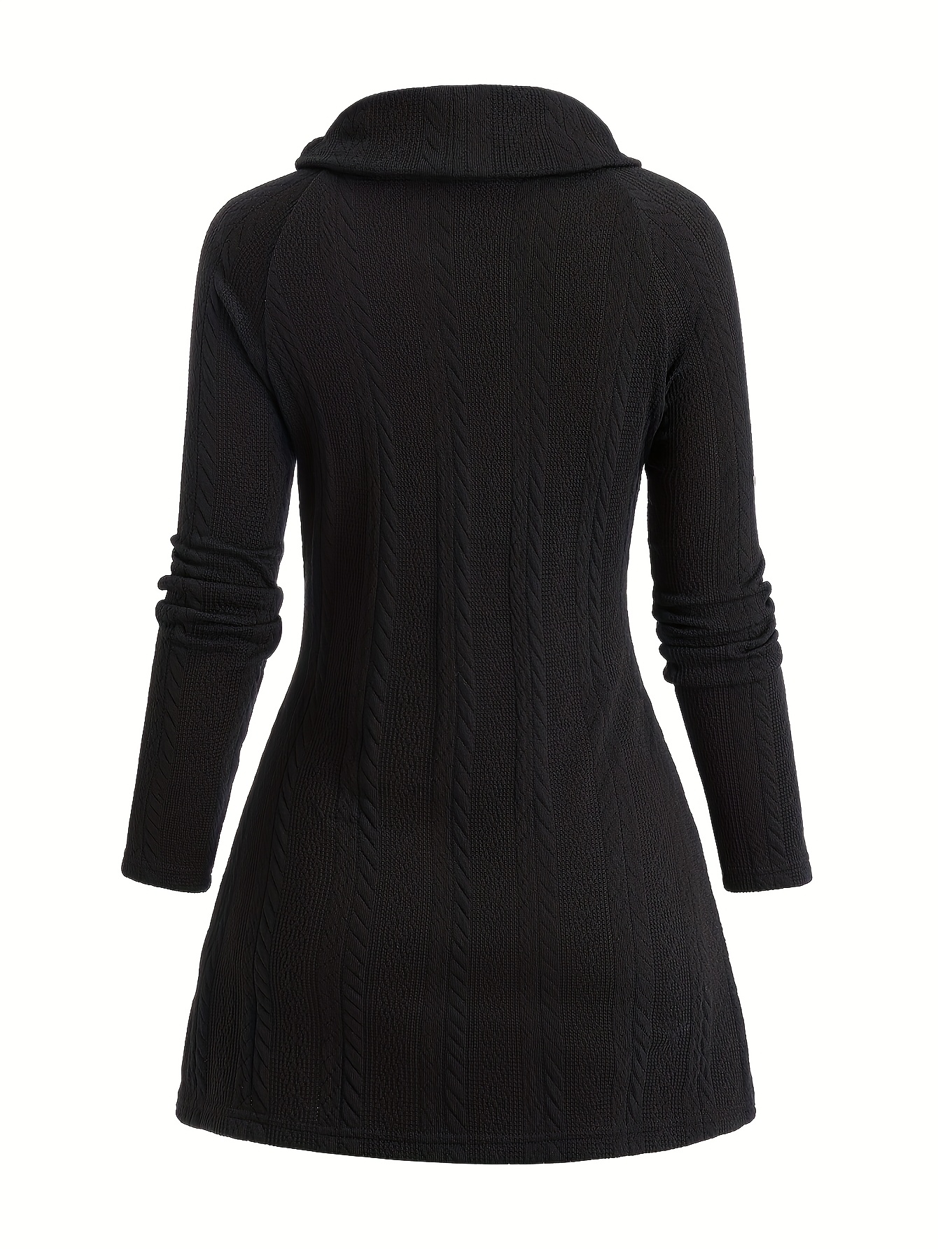 Plus Size, Plus Size Women's High Neck Asymmetrical Button-Front Long Sleeve Top - Stretch Fabric, Machine Washable, Solid Black Casual Chic Fall Winter Tops, Seasonal Wardrobe Staple, Stylish Knitwear, Quality Stitching, Button Front Blouse, Stylish Wardrobe Essential
