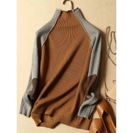 Plus Size, Women's Oversized Layering Sweater - Winter Warm High Neck Turtleneck Pullover, Brown/Beige//Gray, Hand Washable Thick Sweater for Fall & Winter, Casual & Office Wear, Plus Size Friendly Cozy Sweating-Free Base Layer
