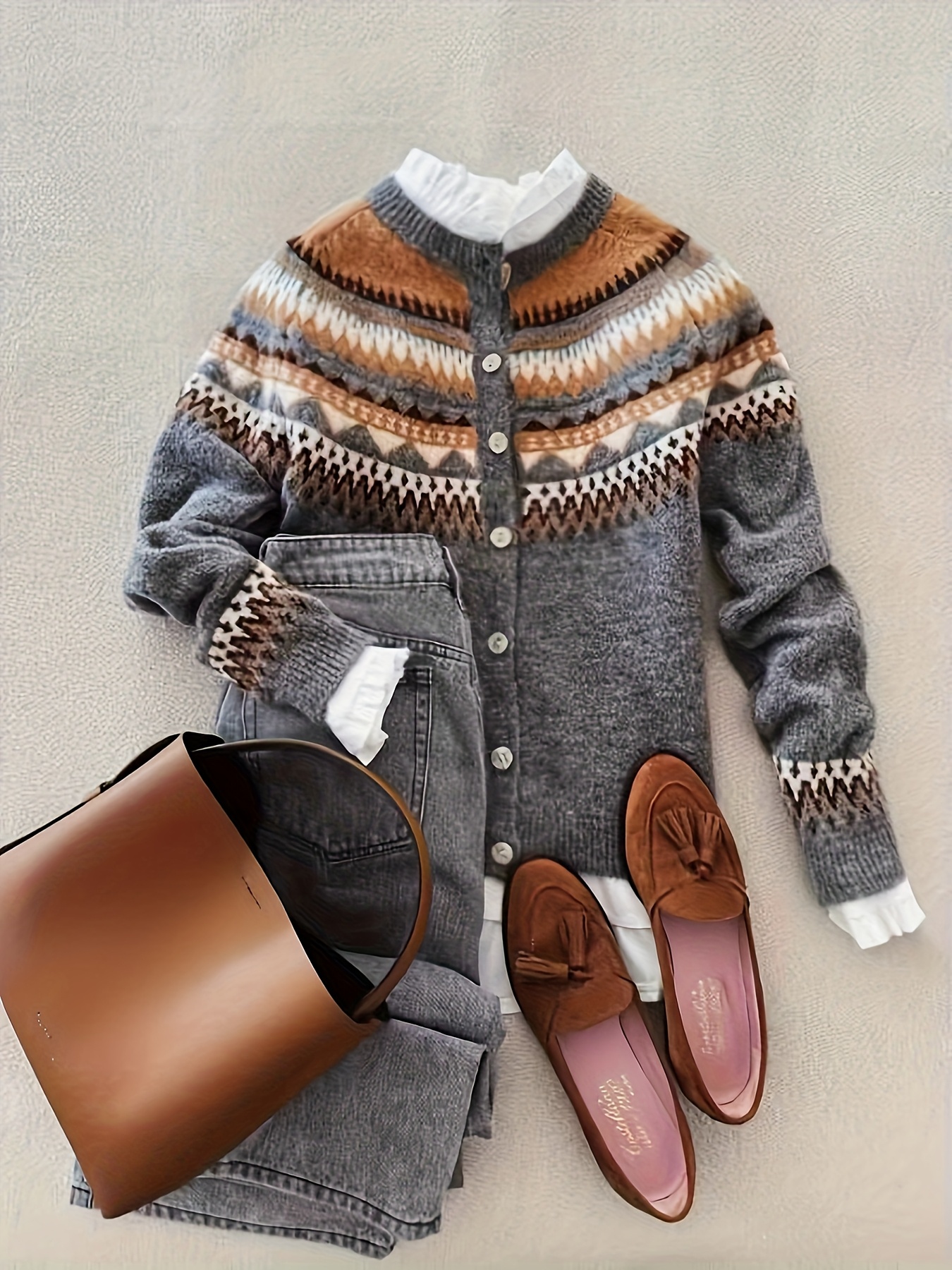 Plus Size - Plus Size Women'S Elegant Sweater - Soft Stretchy Winter Coat with Geometric Pattern, Long Sleeve Round Neck Casual Outerwear, Cozy Fall & Winter Wear, Cozy Winter Wear | Geometric Pattern Sweater | St