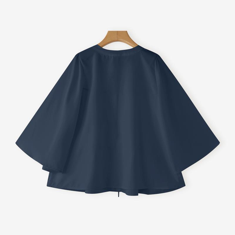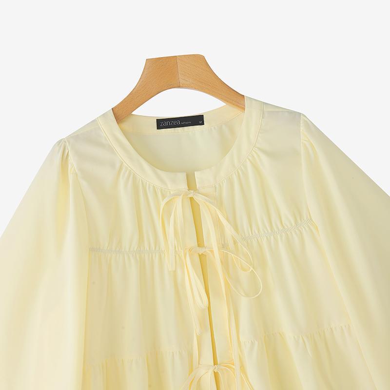 Plus Size - Casual Tops for Women in Plus Sizes Featuring a Solid Color, Long Sleeves, a Mandarin Collar, And a Tied Neck. This Loose, Lightweight Shirt Has a Tiered Design And Is Perfect for Everyday Wear, Embodying a Sweet And Cute Kor