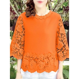 [Short Sleeve Ruffle Blouse] Elegant Plus Size Women's Blouse - Casual Short Sleeve with Ruffle Detail, Solid Color, Non-Stretch Polyester - Perfect for Spring/Summer