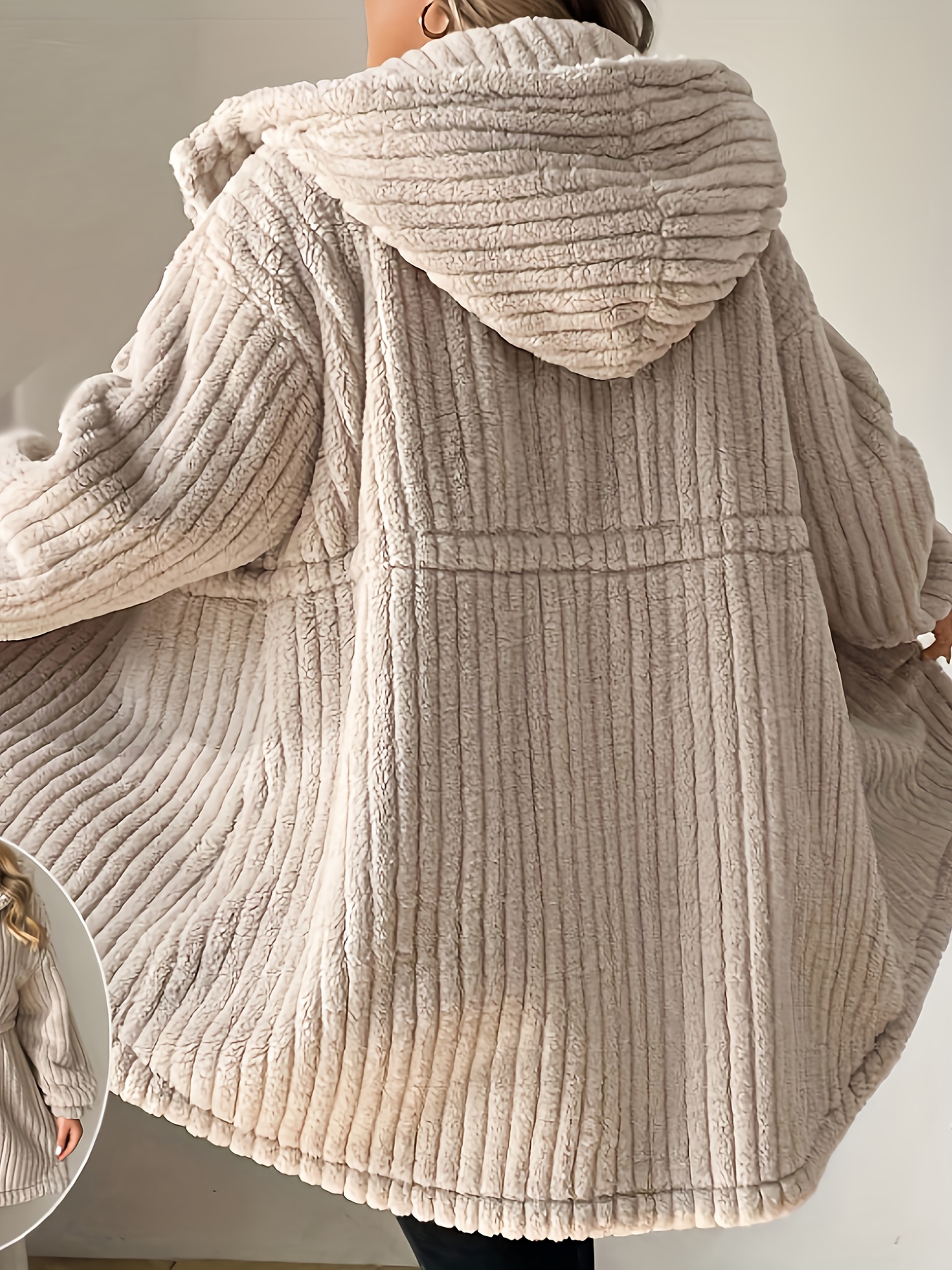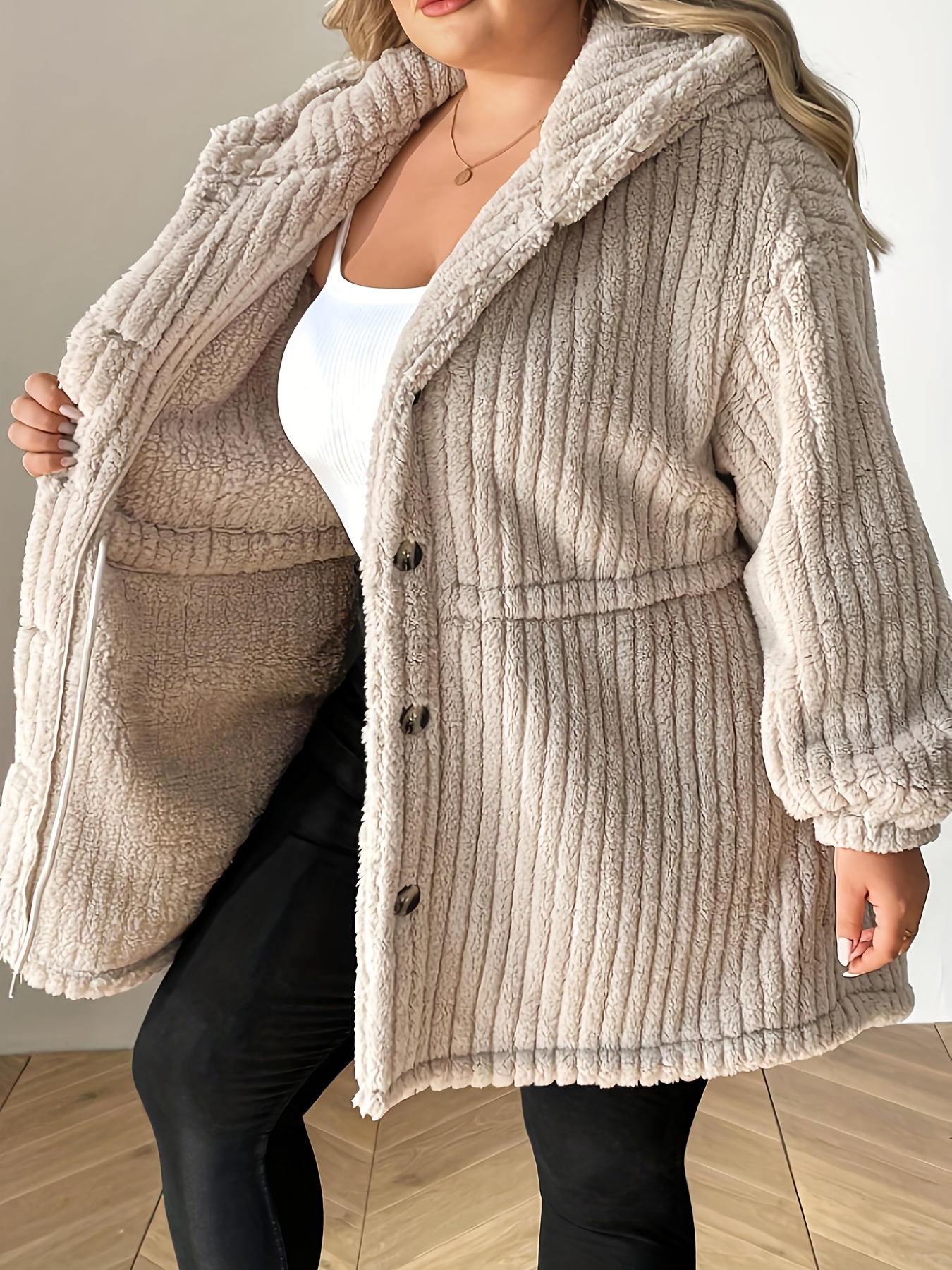 Plus Size - Plus Size, Women'S Plus Size Elegant Teddy Bear Jacket - Cozy Winter Coat with Front Button Closure, Soft Plush & Hooded Collar, Machine Washable (pink) - Casual Outerwear For Cold Weather