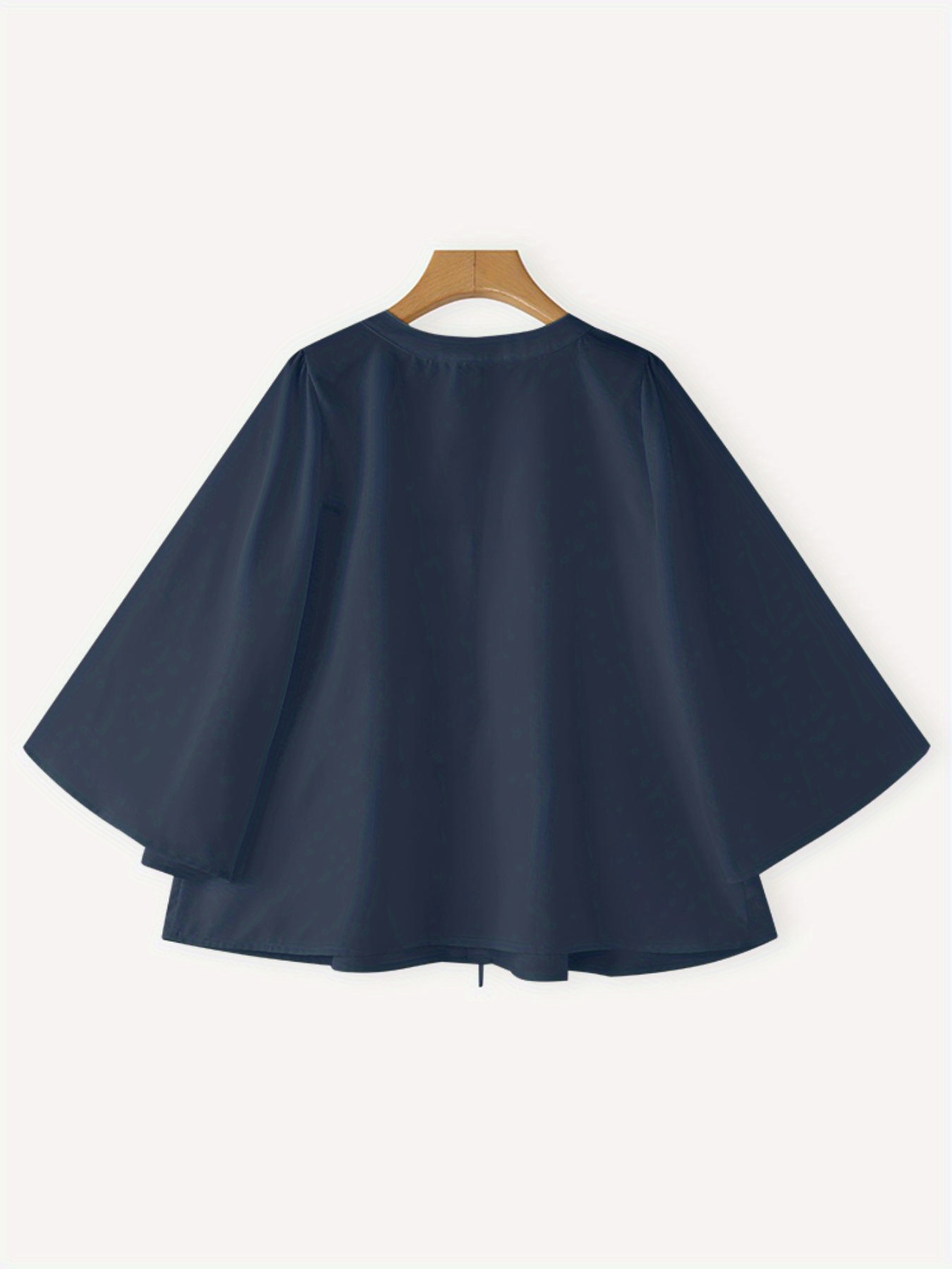 Plus Size - Casual Tops for Women in Plus Sizes Featuring a Solid Color, Long Sleeves, a Mandarin Collar, And a Tied Neck. This Loose, Lightweight Shirt Has a Tiered Design And Is Perfect for Everyday Wear, Embodying a Sweet And Cute Kor