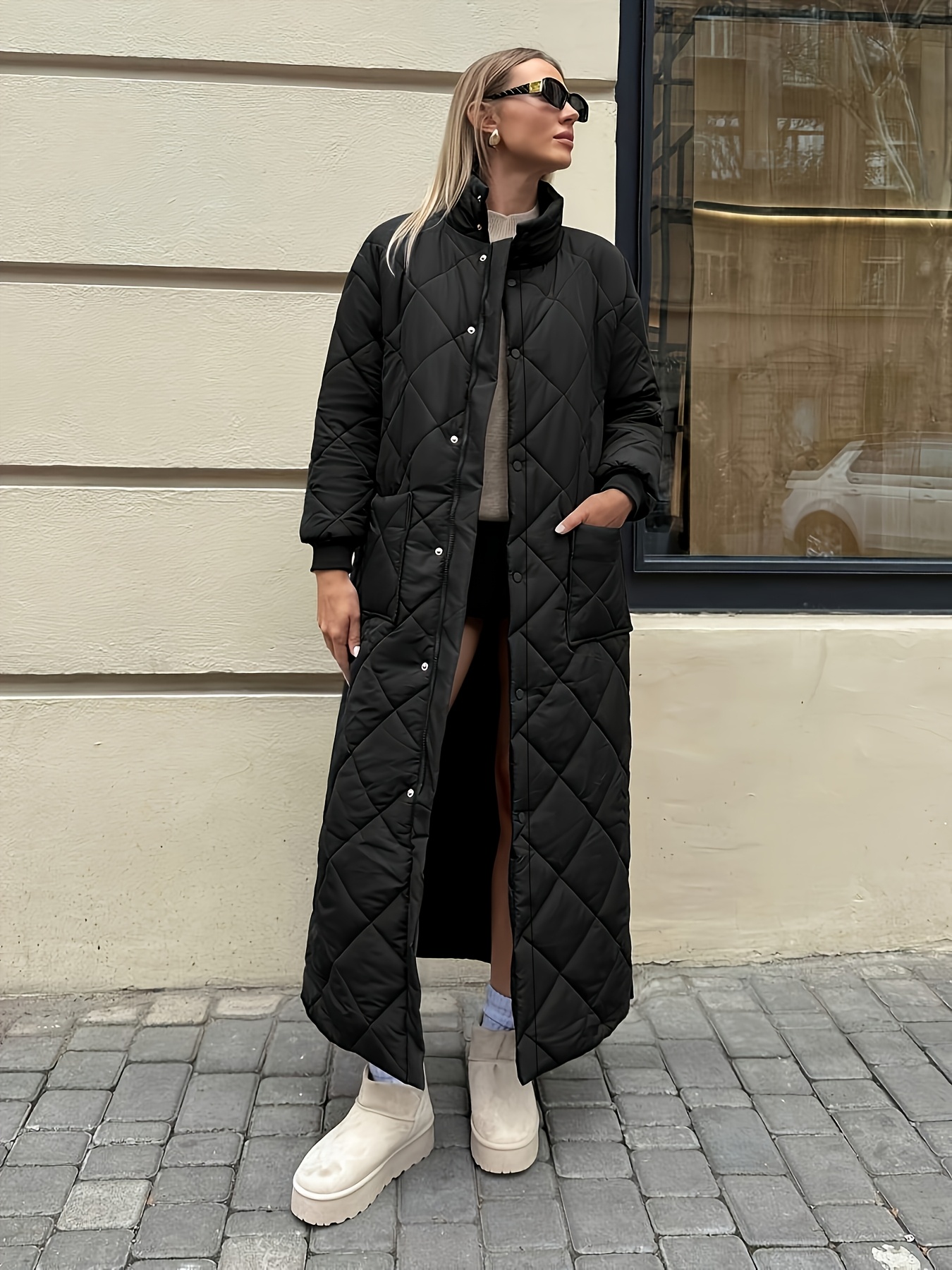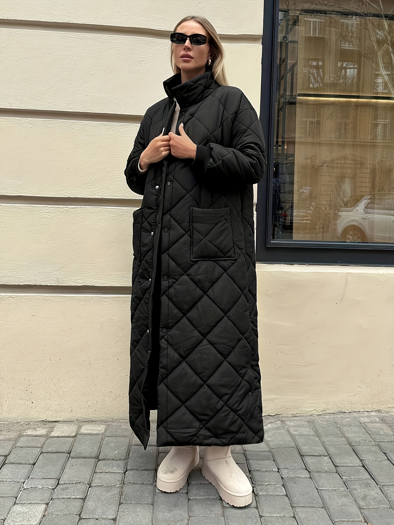[Plus Size | Winter Coat] Plus Size Winter Coat - Women's Plush-Lined Thickened Warm Stand Collar for -10°C, Large Pockets, Machine Washable Elegant Outerwear in Brown & Maroon (Elegant Special Collection)