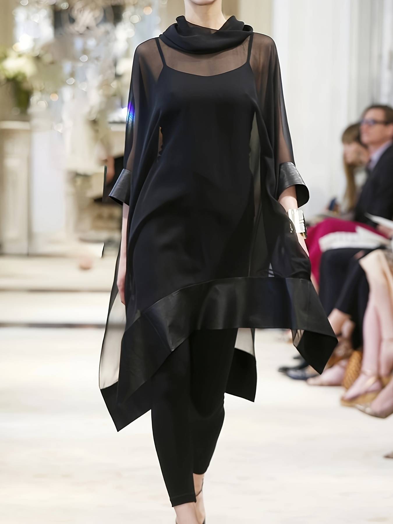 Plus Size, Women's Plus Size Elegant Blouse - Semi-Sheer Asymmetrical Shirt with Stack Neckline, Lightweight Chic Tops for Casual & Formal Events - Machine Washable Women's Clothing, Formal Attire, 3/4 Sleeve Design, Delicate Fabric
